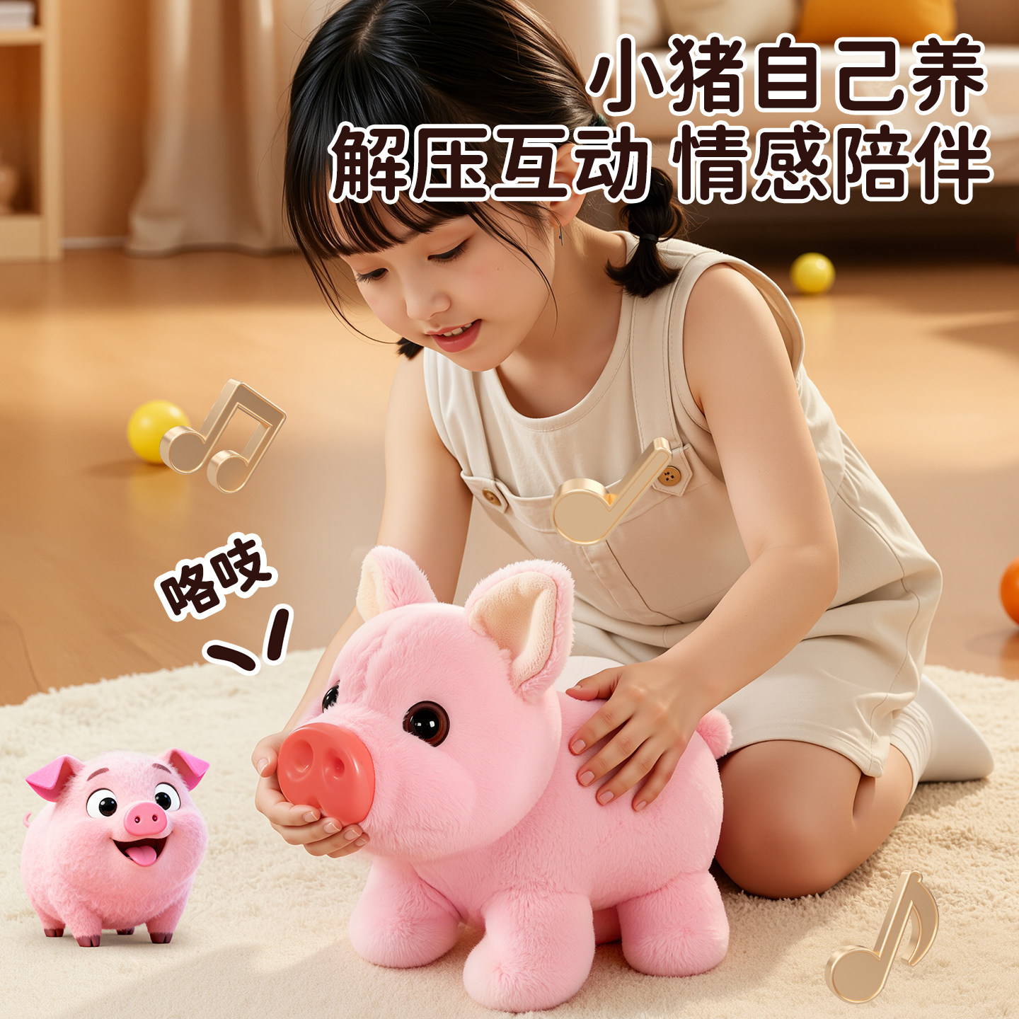 可爱电动摇晃小猪玩具仿真宠物会动出声玩偶送闺蜜女孩子礼物儿童