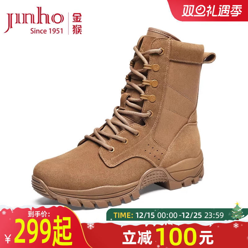 金猴新式棕色套式作战训靴户外训练牛皮防穿刺沙漠靴真皮越野靴子