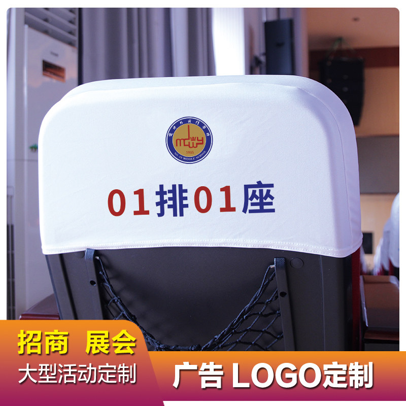 定做影剧院广告头套礼堂座套会议室椅套学校报告厅座位靠背椅帽罩