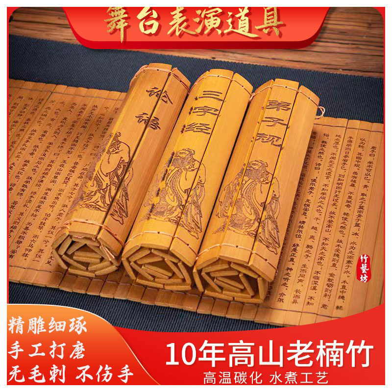 空白卷轴竹简弟子规论语唐诗大学定做书激光雕刻儿童国学舞台道具