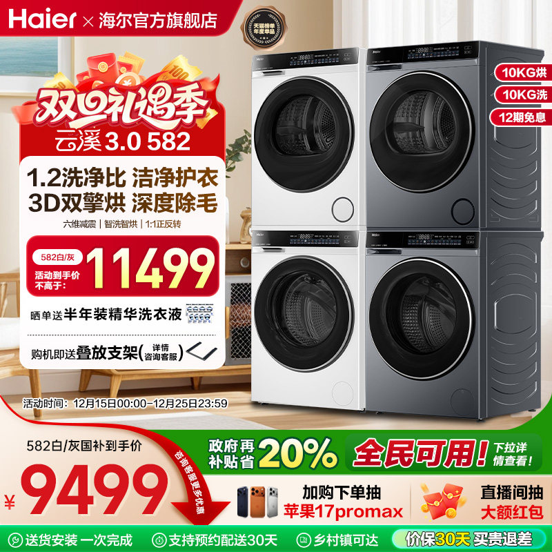 推荐理由:【云溪3.0】海尔582W洗烘套装精华洗衣机双擎直驱3D热泵烘干机