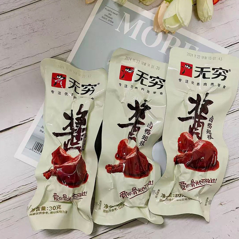 推荐理由:无穷酱卤烤鸭翅根解馋零食小吃小鸭腿麻辣鸭小腿卤味休闲零食即食