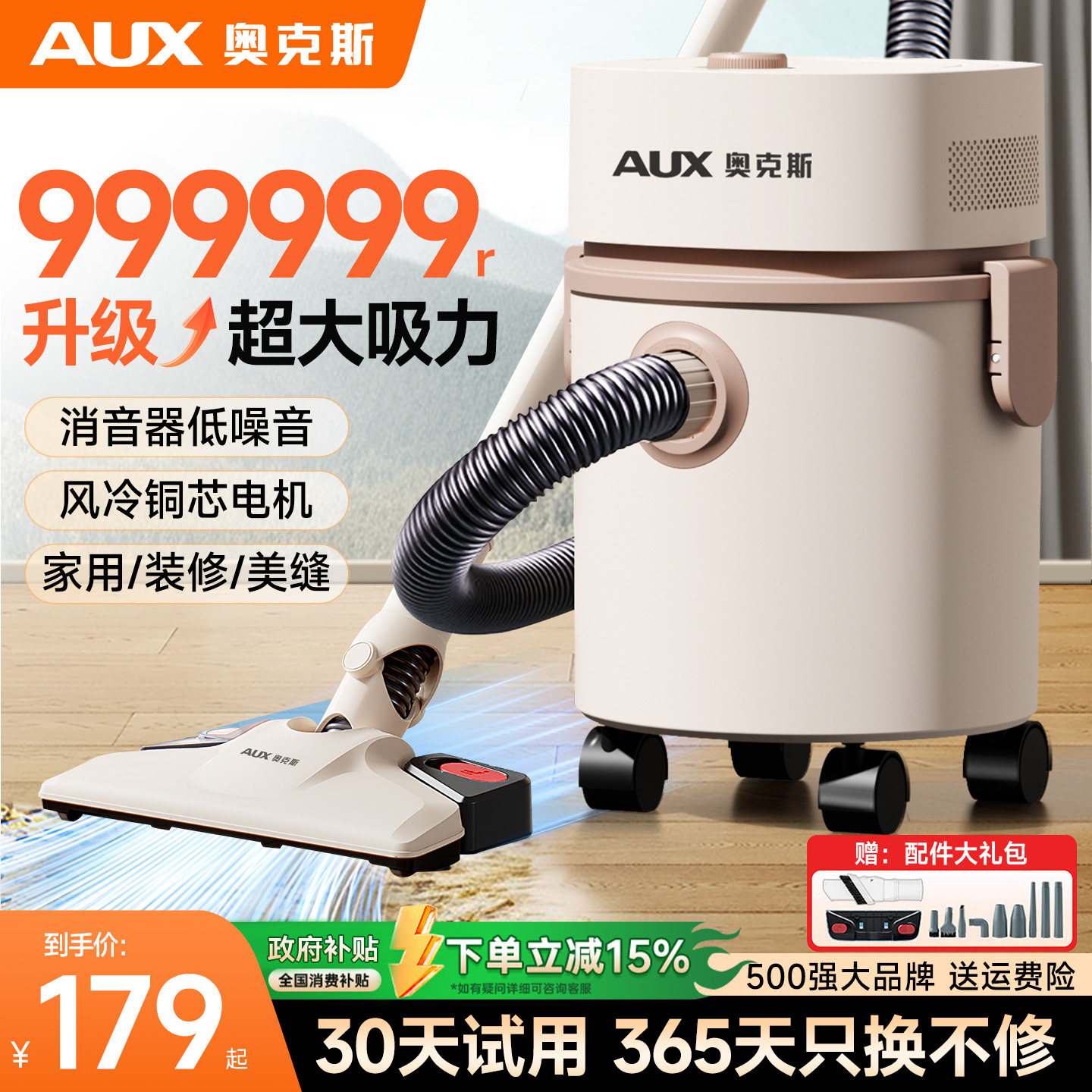 奥克斯吸尘器家用小型手持大功率工业开荒保洁猫毛拖把二合一体机