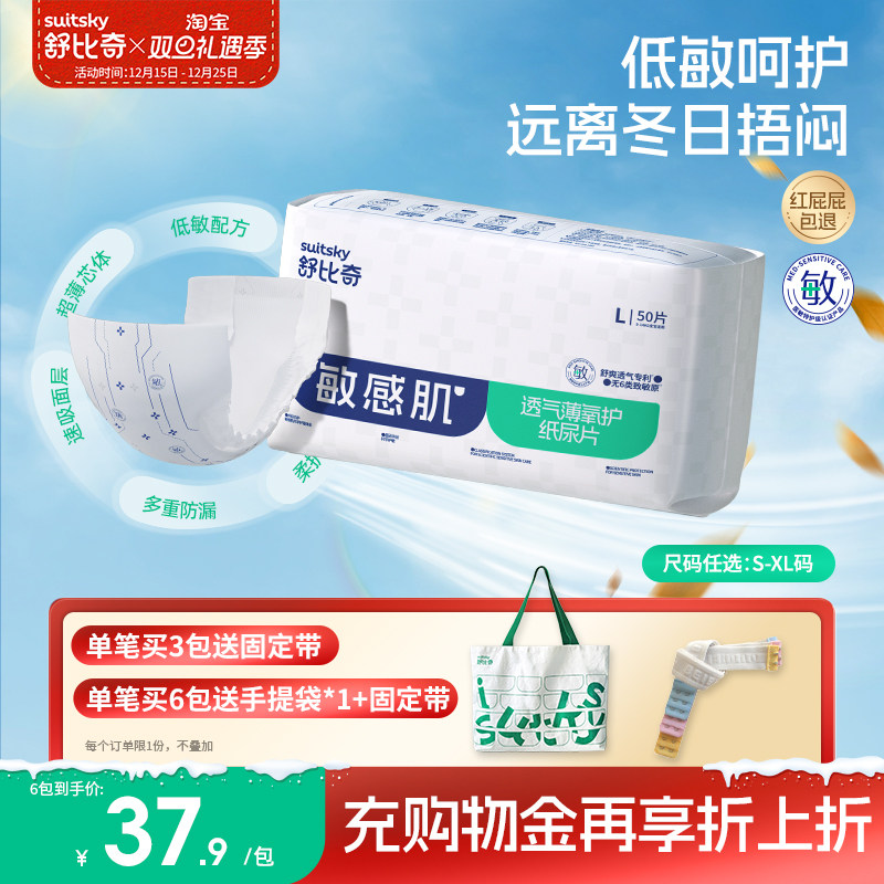 舒比奇透气薄纸尿片S/M/L/XL码婴儿尿不湿无腰贴【新老随机】