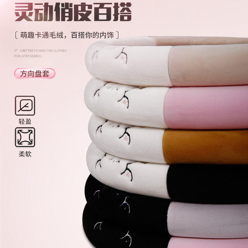 推荐理由:小熊款方向盘保护套冬季毛绒方向盘套米色短毛绒装饰冬天保暖毛毛