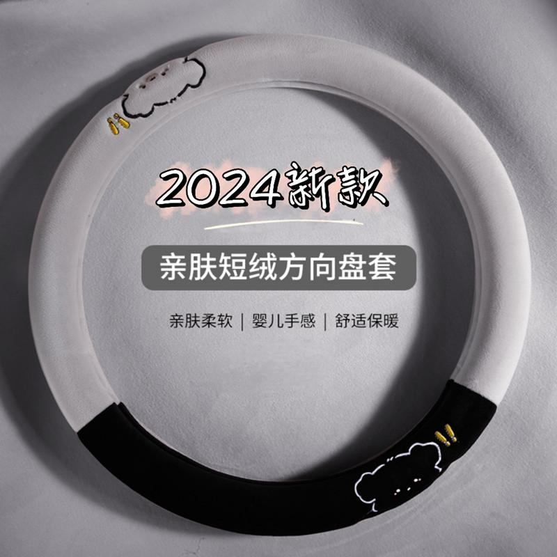 小熊款方向盘保护套冬季毛绒方向盘套米色短毛绒装饰冬天保暖毛毛