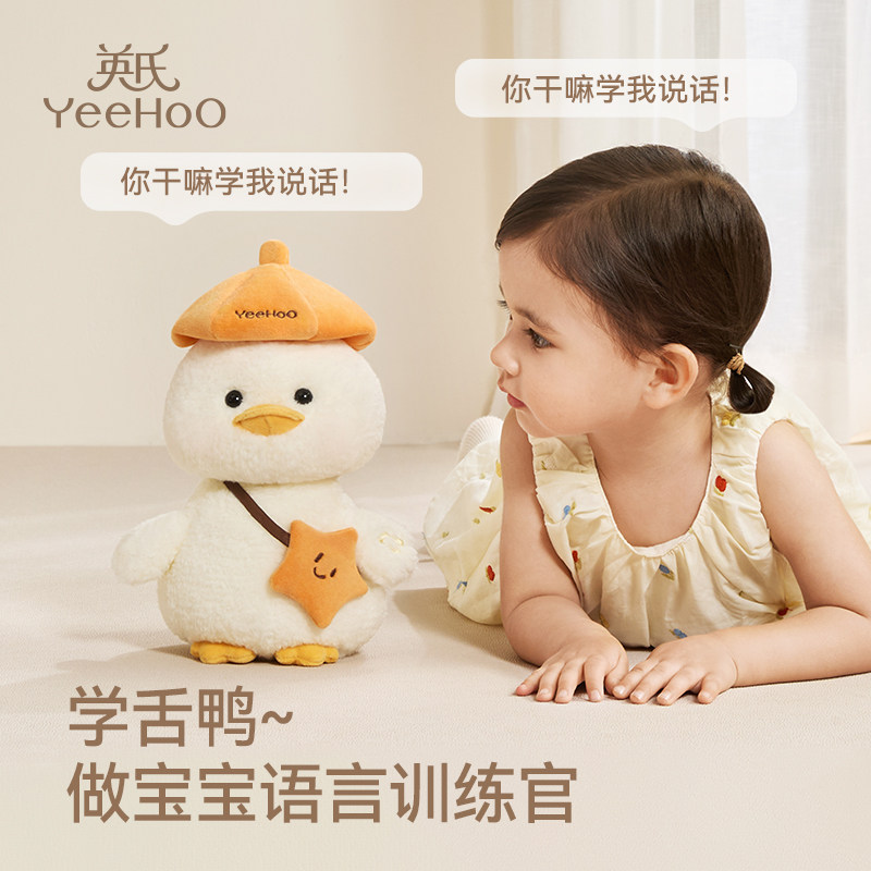 英氏复读歪头鸭玩具毛绒公仔婴幼儿学说话唱歌早教安抚团团鸭玩偶
