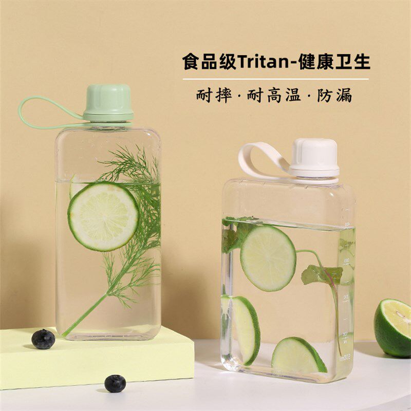 简约时尚创意扁平方形随手杯带刻度小巧便携防漏耐摔学生塑料水杯