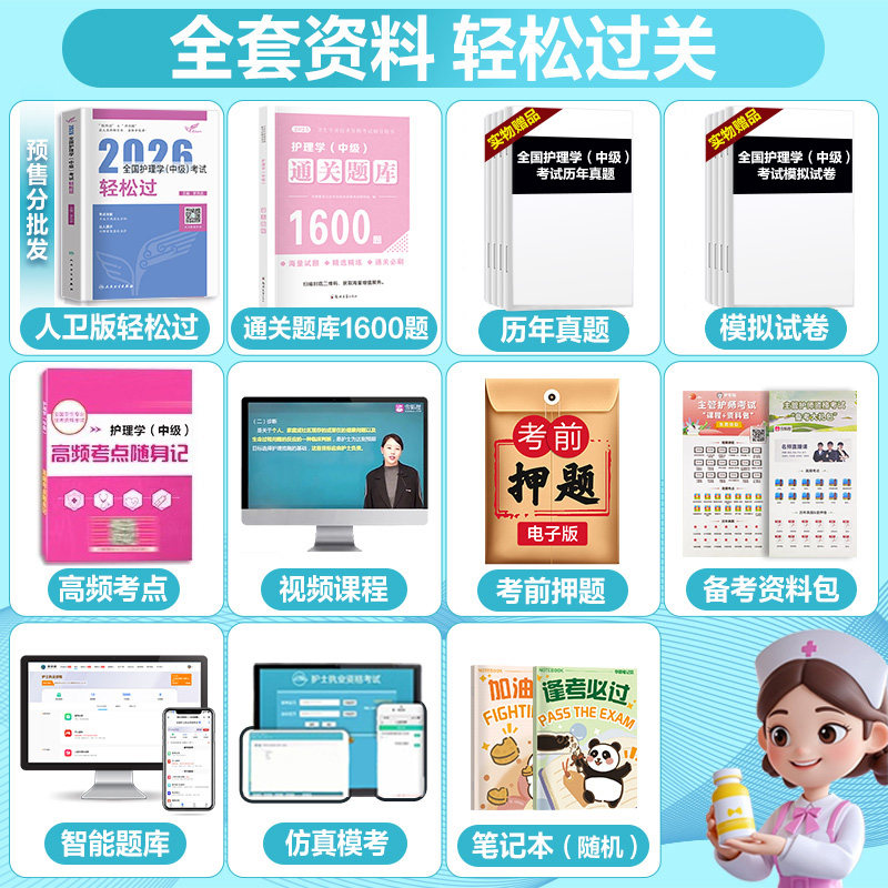 主管护师人卫版备考2026教材轻松过中级护理学书历年真题模拟试卷习题集题库人民卫生出版社主管护师资格考试资料冲刺跑随身记