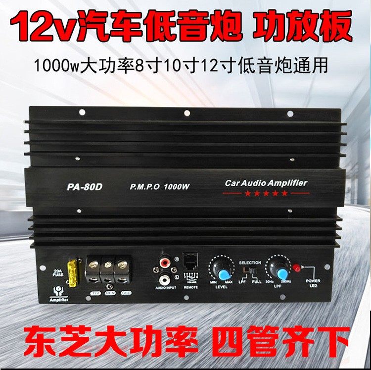 高品质大功率1000W车载音响功放板12V发烧级12寸汽车低音炮有源