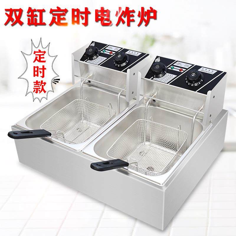 定时双杠电炸炉82大容量不锈钢计时油炸锅薯条鸡腿翅摆摊出口外贸