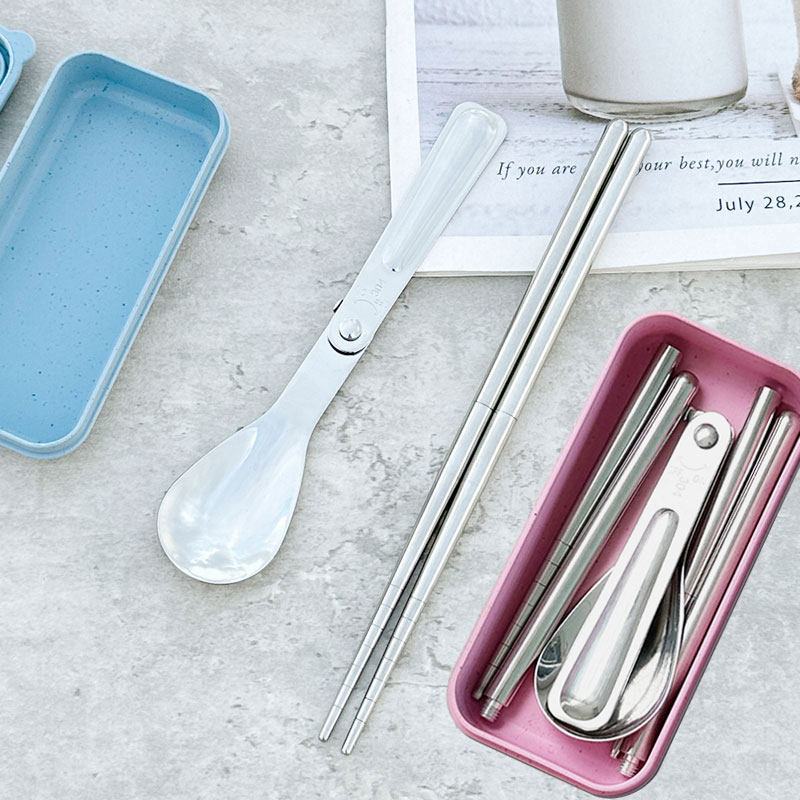 新品304不锈钢折叠餐具勺筷子户外野餐露营便携餐具可折叠勺套装