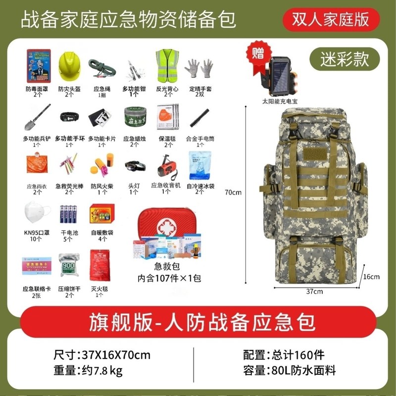 推荐理由:灾备包国标家庭防灾背包战备地震应急求生套装防灾避难全套
