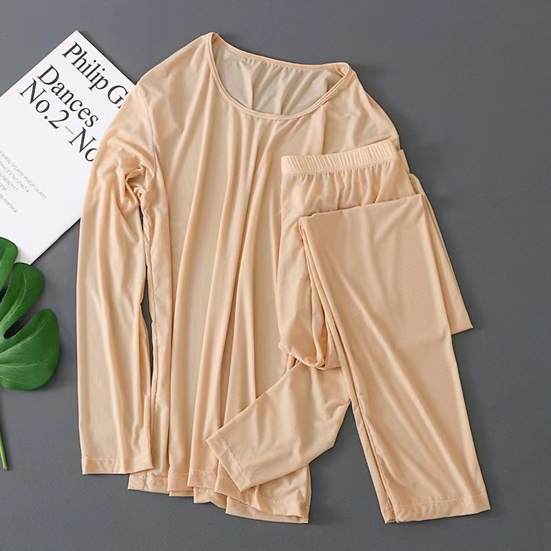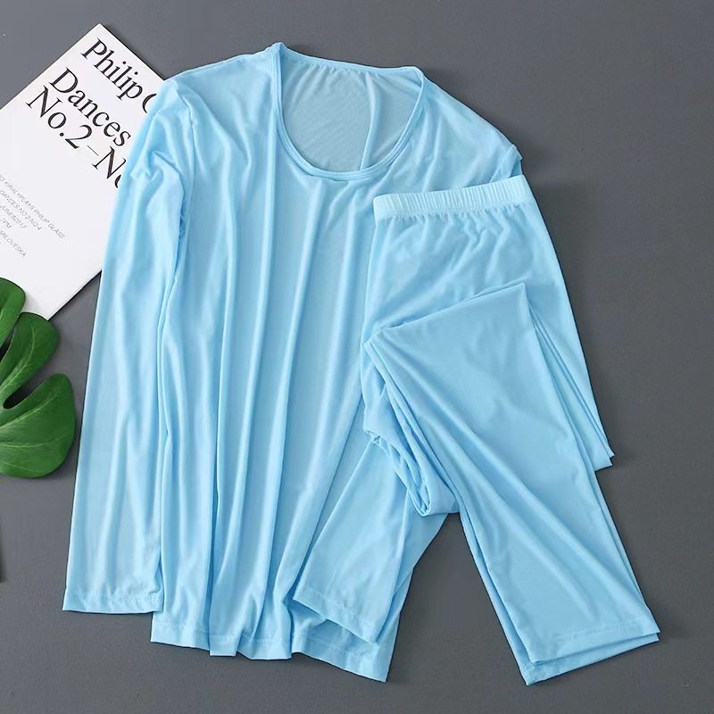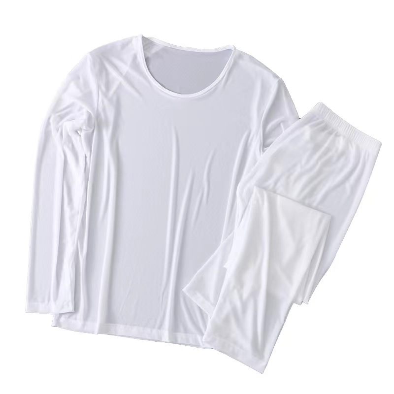 冰丝超薄男士秋衣秋裤套装性感半透明透气速干青年无痕贴身打底衫