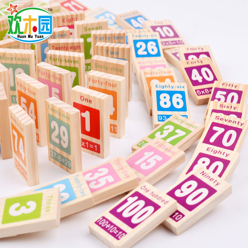 宝宝识字积木100粒数字运算多米诺骨牌儿童益智玩具1-2-3-6一周岁