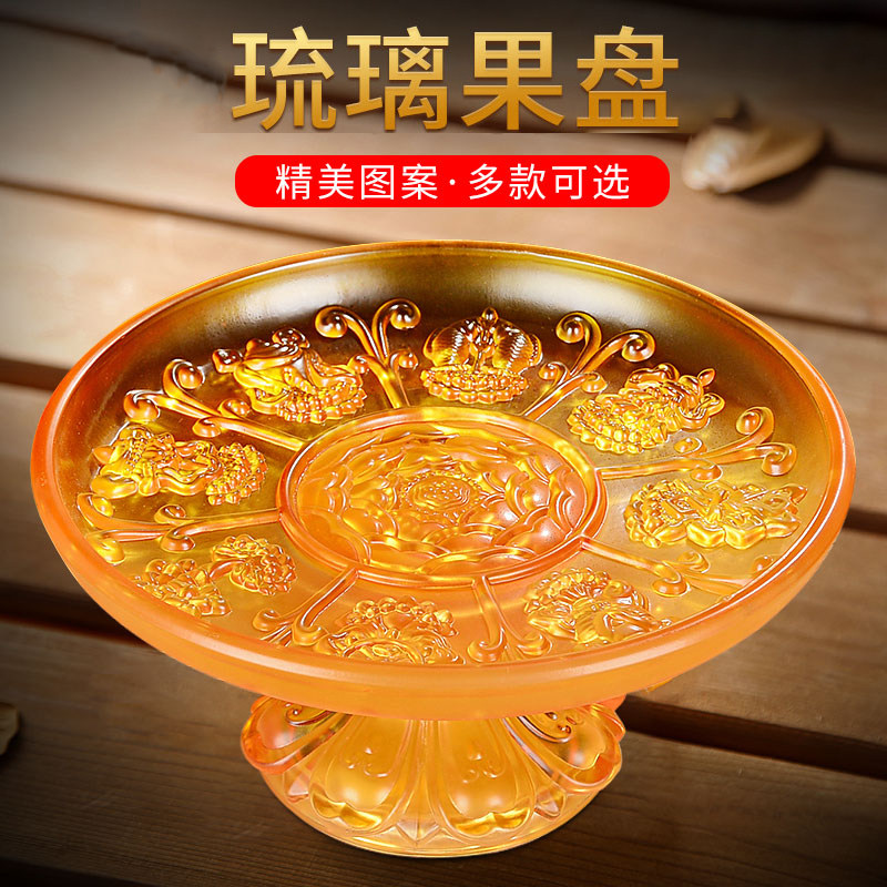 贡盘琉璃供盘水果盘桌面果盘家用客厅用品把八吉祥佛具用品