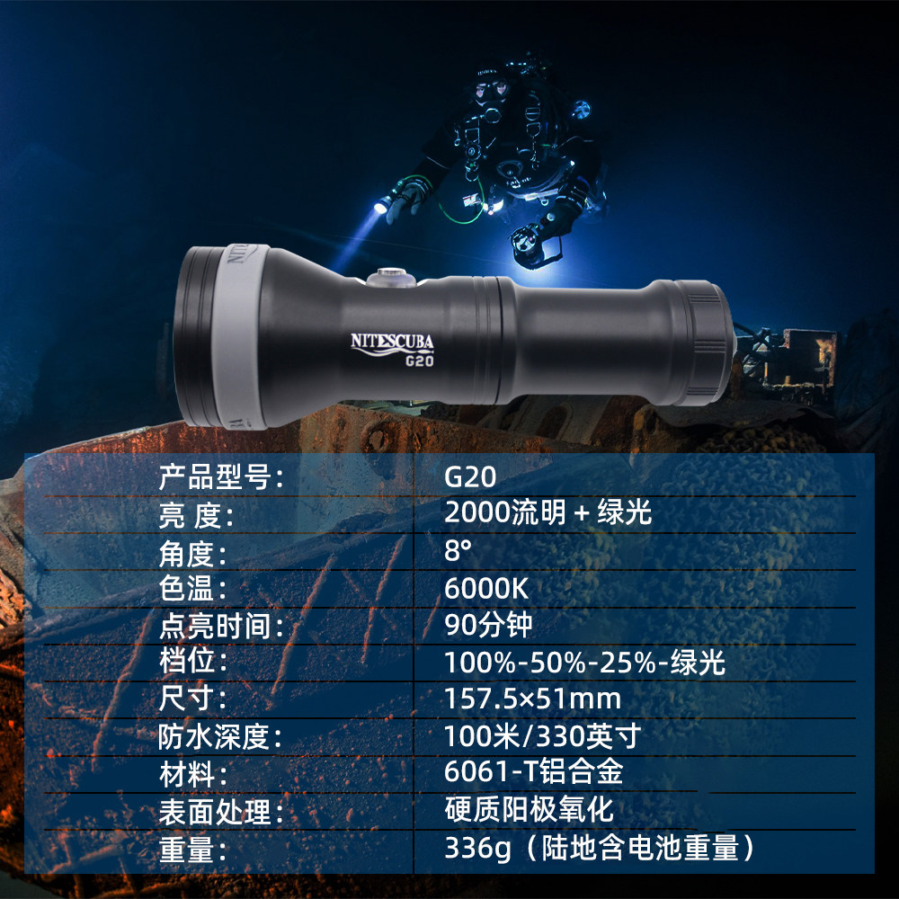 Nitescuba奈特潜水激光灯水下信号灯夜潜水手电筒指示灯深洞潜G20