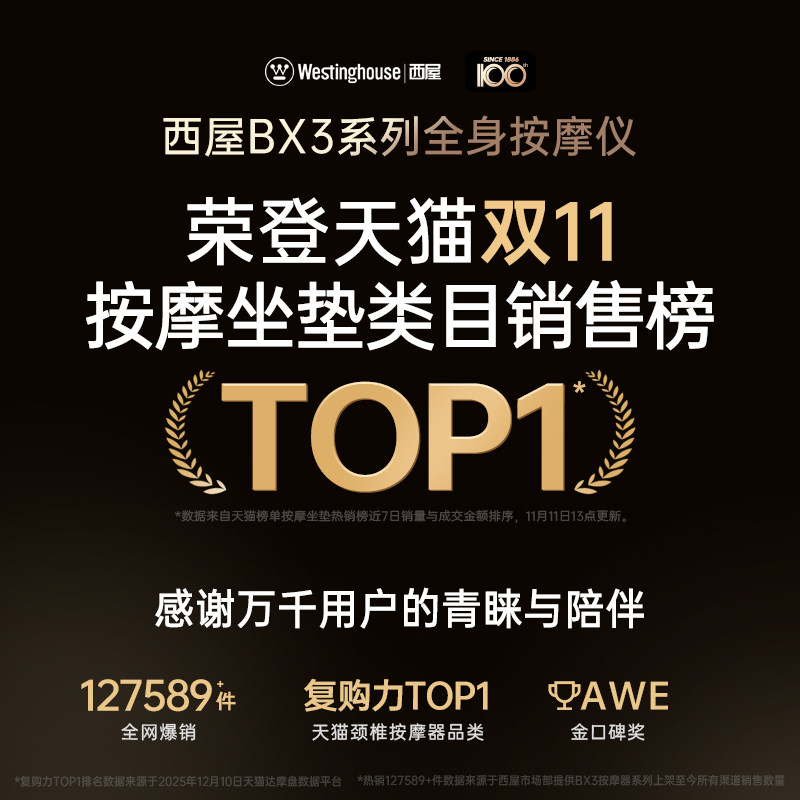 美国西屋BX3腰背部按摩仪全自动揉捏全身可用颈椎家用按摩器靠垫