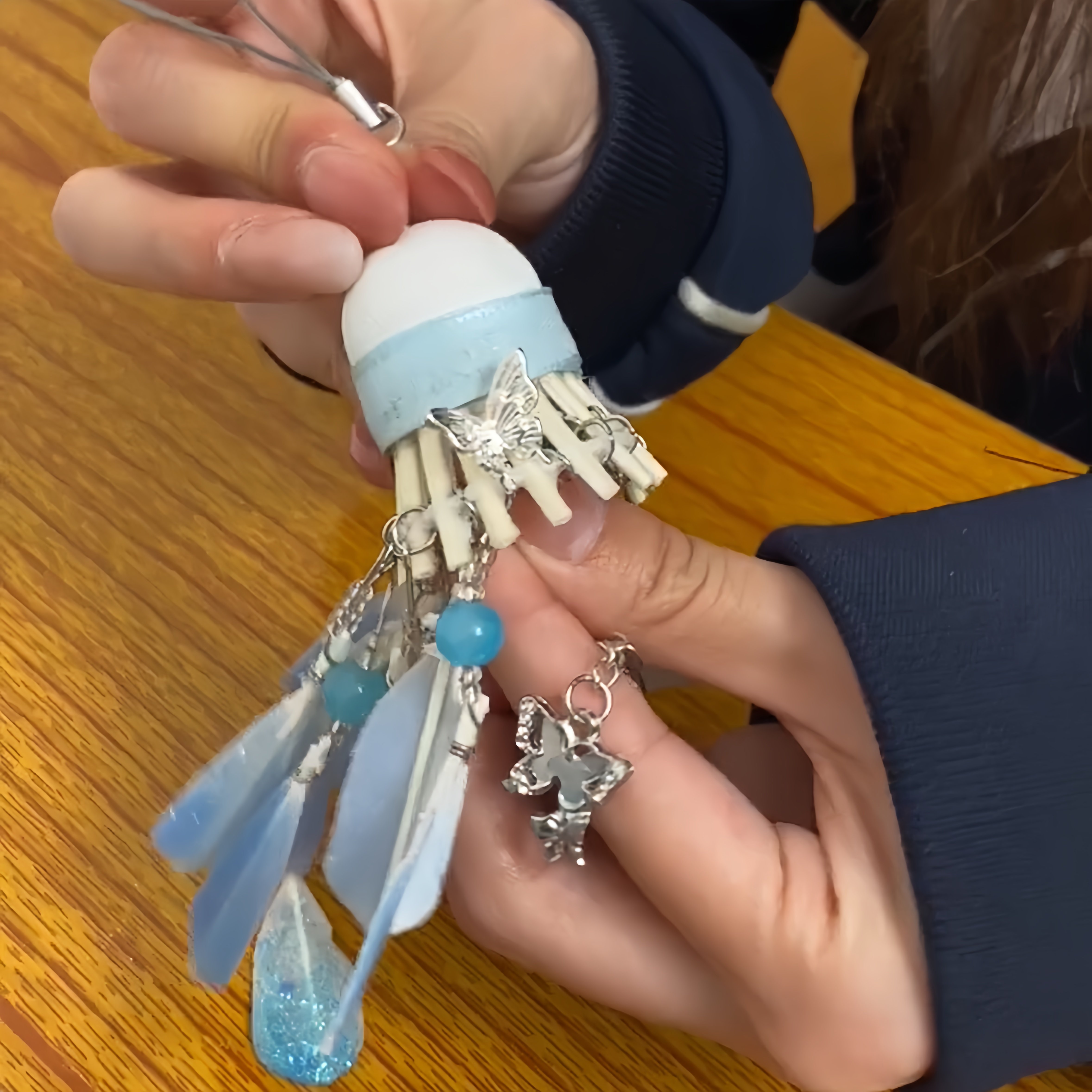 推荐理由:羽毛球风铃挂件diy材料包梦幻蝴蝶手工挂饰送闺蜜球搭子礼物挂件