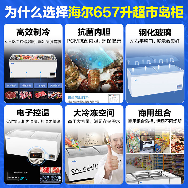推荐理由:海尔商用岛柜雪糕柜卧式339/518/657升L大容量展示柜冷冻冷柜冰柜