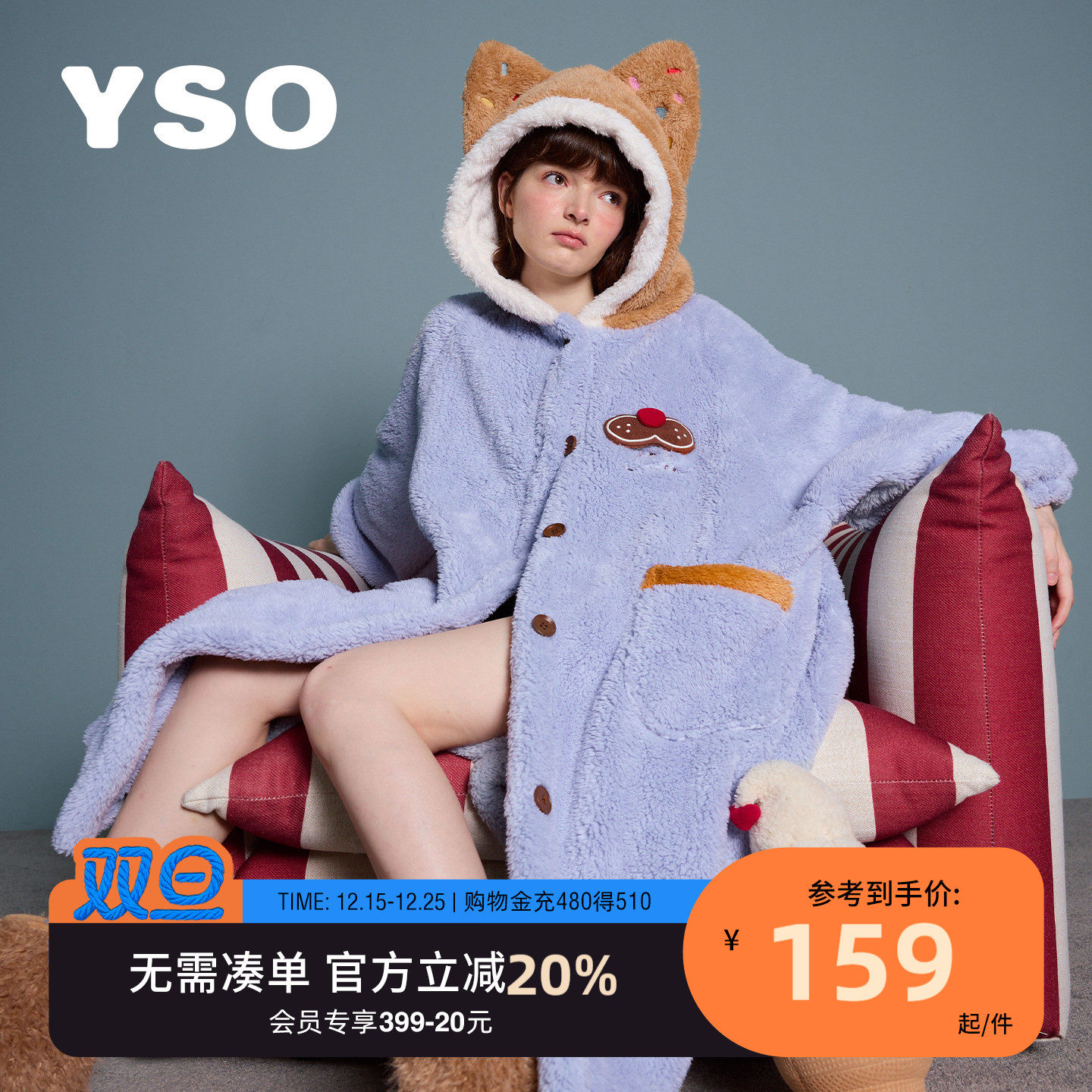 yso【酷猫系列】睡衣女秋冬新款毛绒长款连帽加厚保暖开衫睡袍D