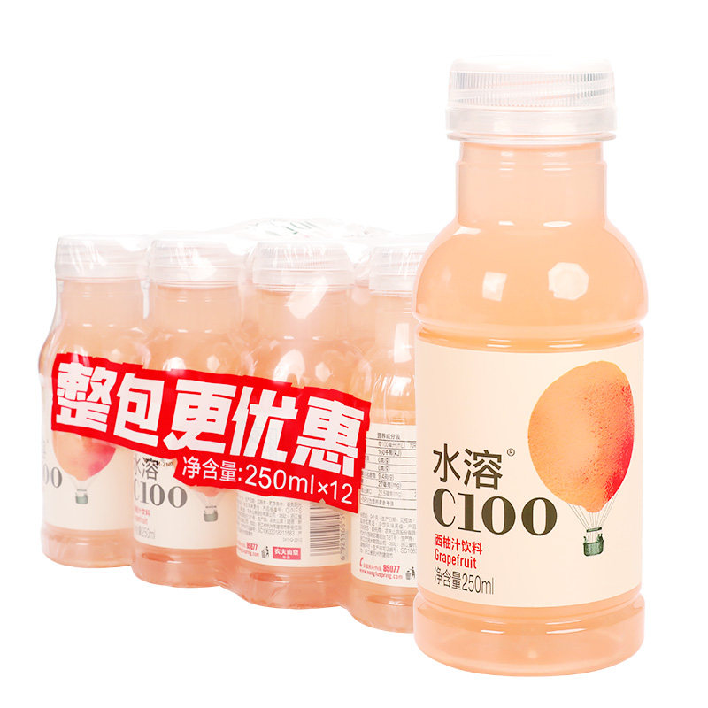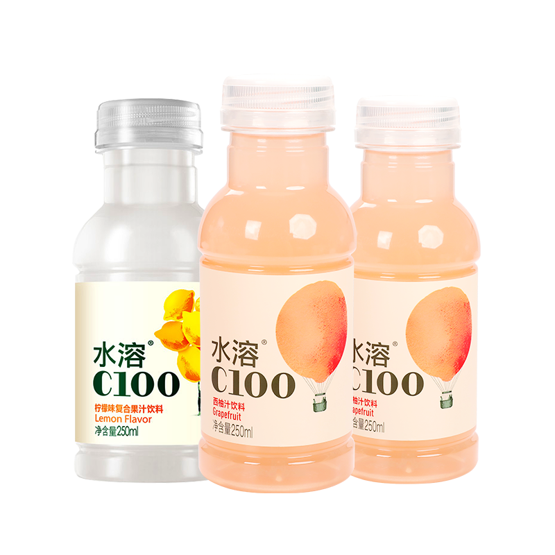 推荐理由:农夫山泉水溶c100小瓶装柠檬味250ml*12瓶整箱西柚味复合果汁饮料