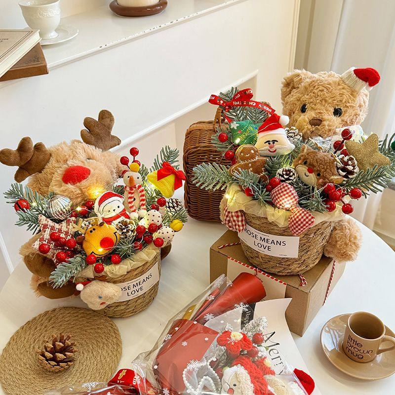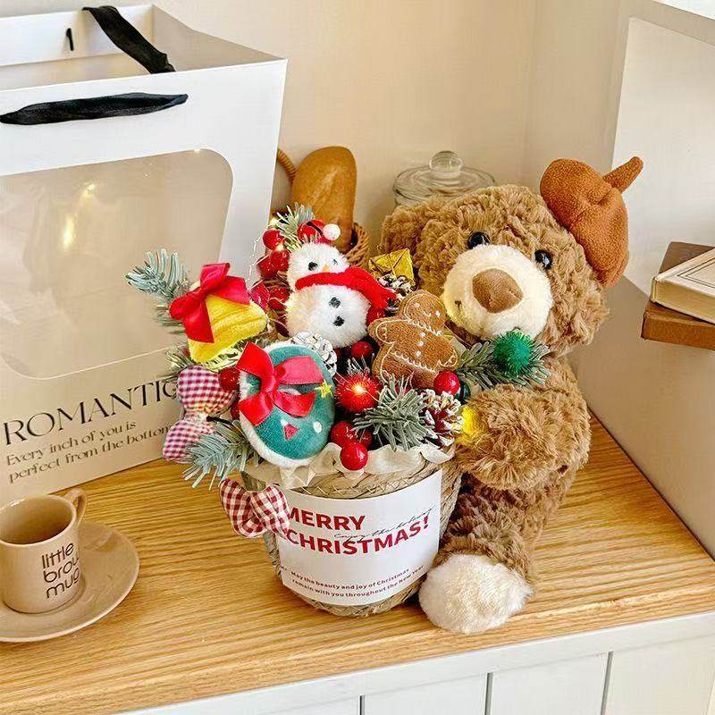 圣诞节礼物卡通麋鹿玩偶花束抱抱桶幼儿园儿童生日送男孩女孩女生