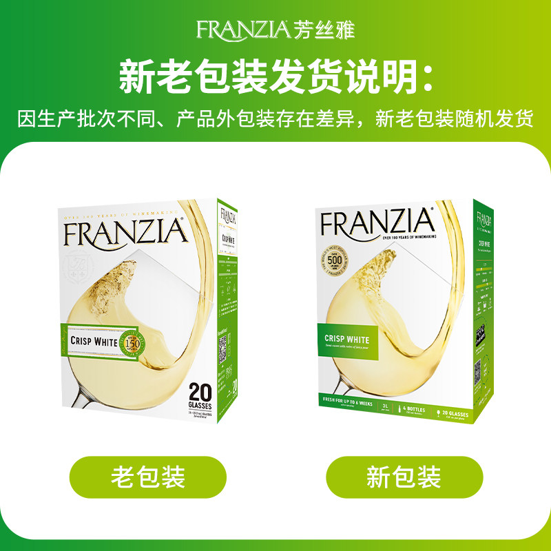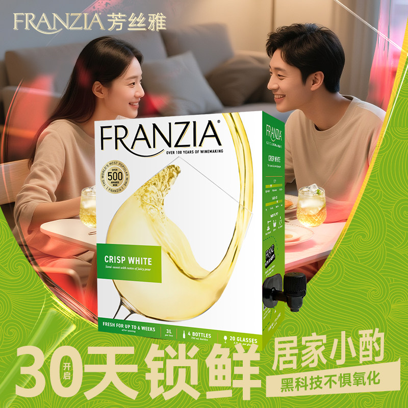 FRANZIA芳丝雅美国原盒进口清爽半甜白葡萄酒3L 低度盒装葡萄酒
