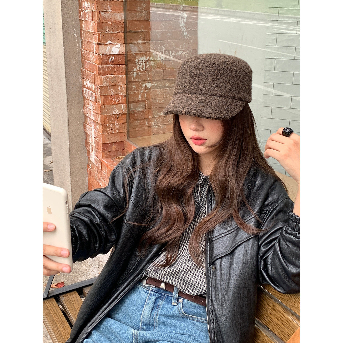 芝士商店~咖色毛呢报童帽女2025新款冬季平顶帽子韩系复古马术帽