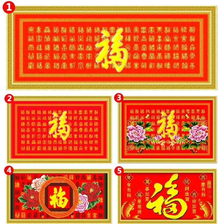 2025新款棉线绣百福图十字绣成品机绣已绣好的出售福字绣字画客厅