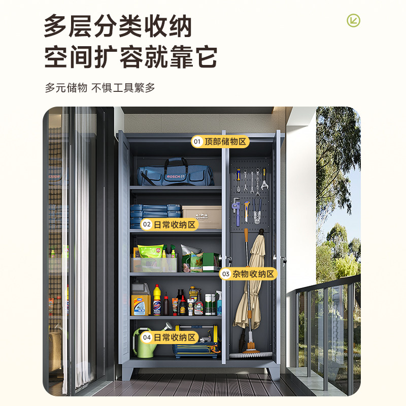 推荐理由:阳台清洁工具收纳柜双门拖把柜卫生间家政柜教室扫帚保洁柜钢制柜