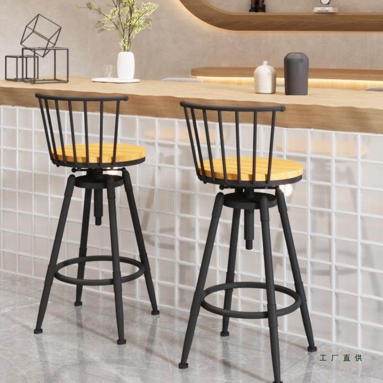 吧台椅工业风高脚升降旋转吧椅螺旋家用酒吧椅靠背铁艺转椅吧凳子
