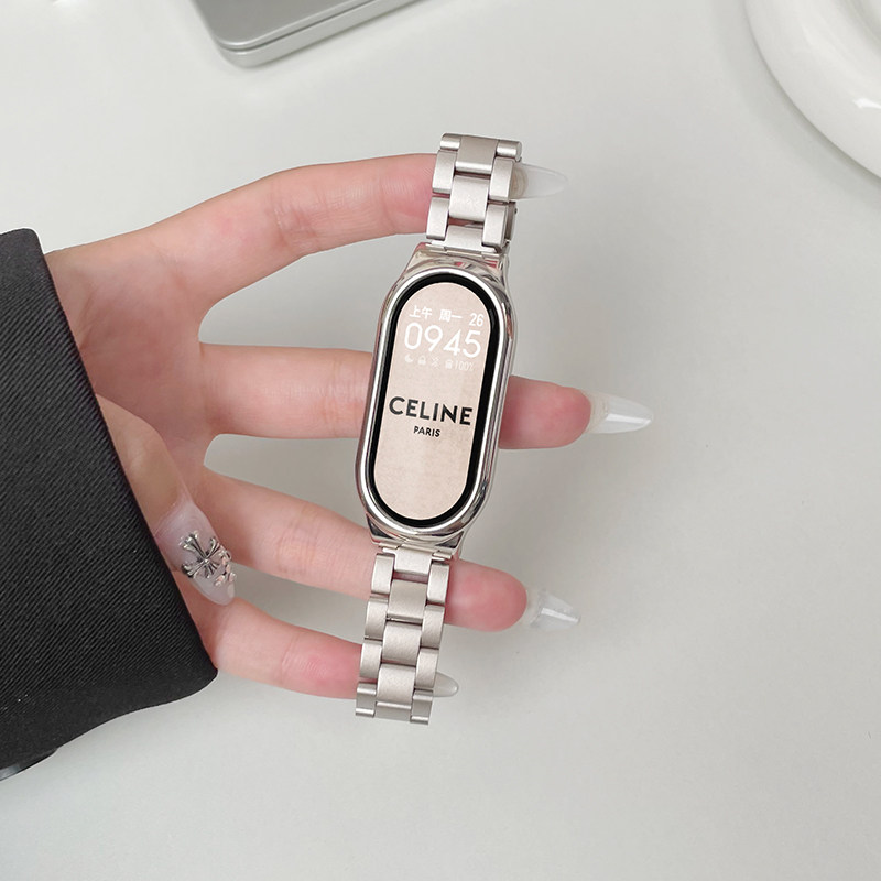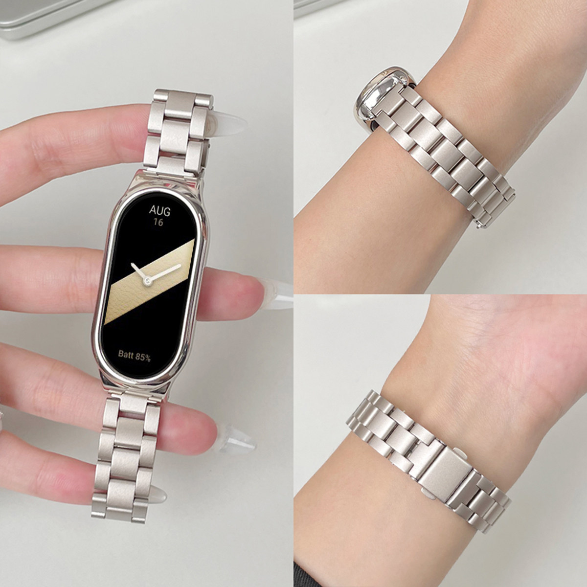 适用小米手环10表带9/8/7nfc版三珠金属不锈钢钢带智能运动3/4/5/6男女高级陶瓷版金属表链保护壳替换带配件