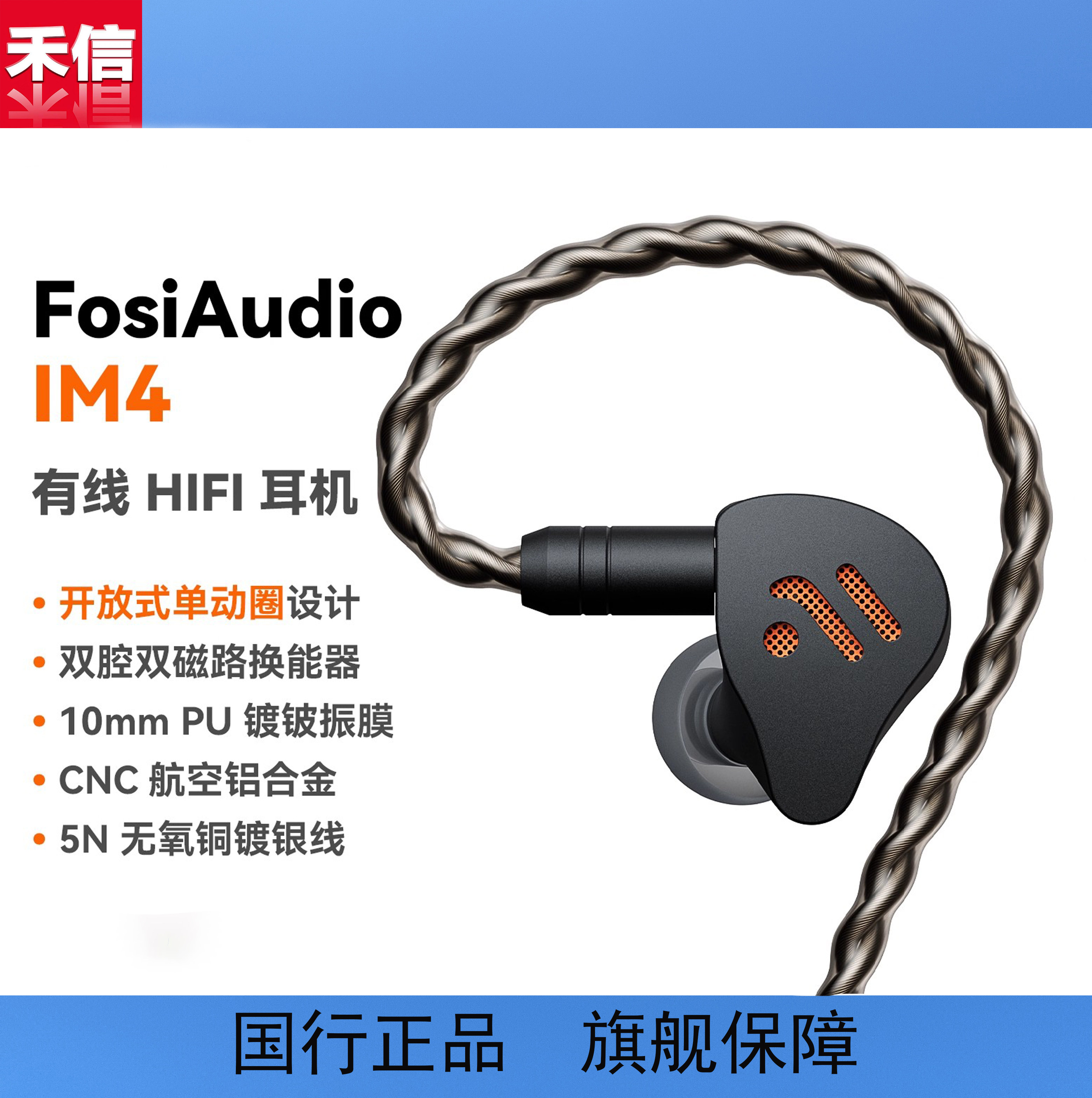 FosiAudio弗西IM4有线HIFI耳机入耳动圈音乐游戏耳塞可换线开放式