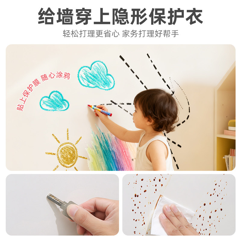 推荐理由:墙壁贴纸保护膜静电吸附自粘防水防潮瓷砖乳胶漆白墙壁纸防脏透明