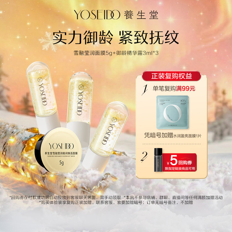 【百补专享】养生堂雪融莹润面膜5g+御龄精华露3ml*3紧致淡纹