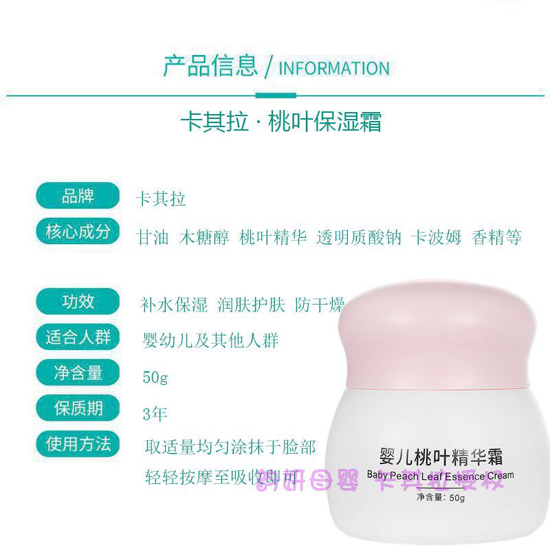 推荐理由:卡其拉婴儿桃叶面霜 婴儿宝宝四季补水不油 新生儿童保湿润肤乳液