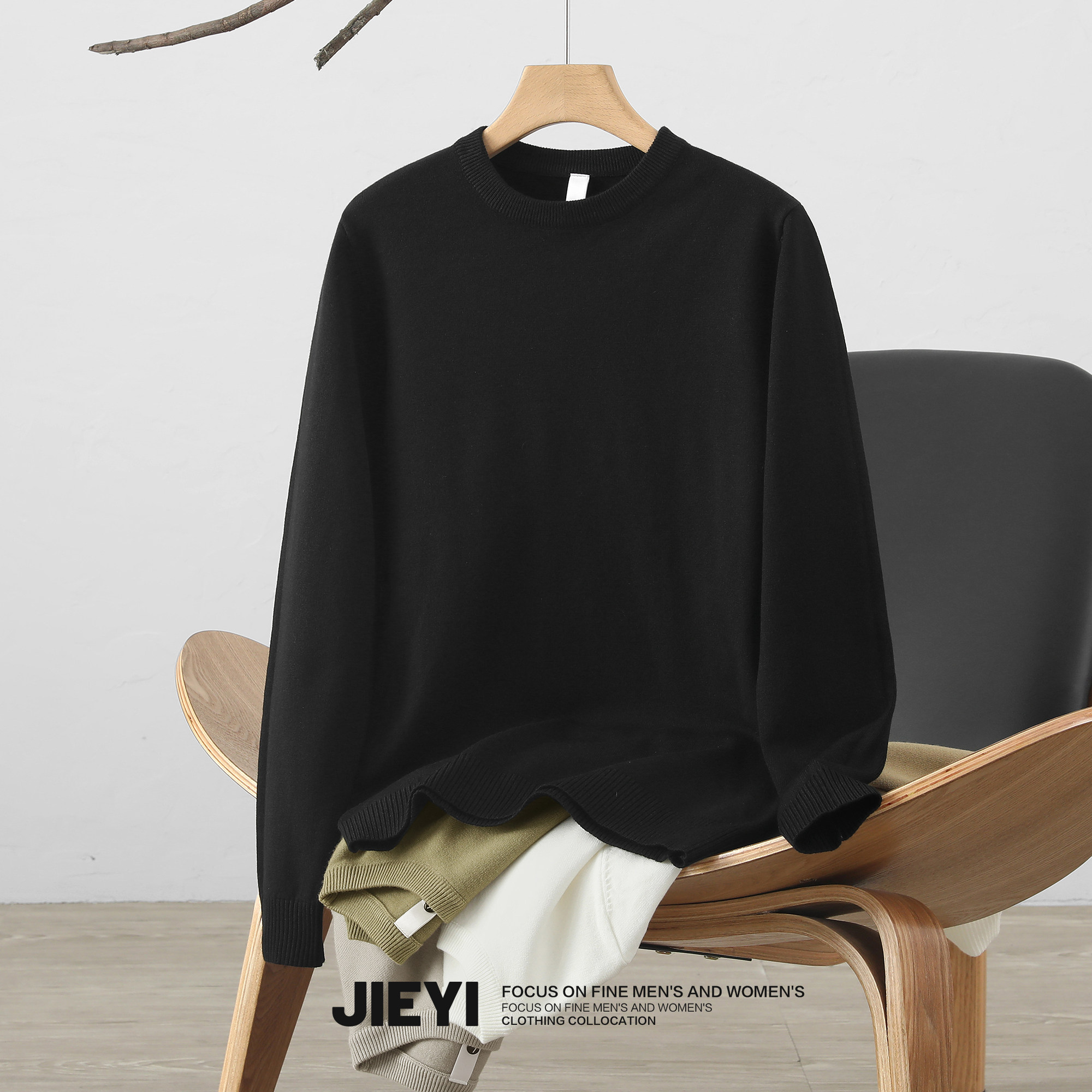 推荐理由:介乙 纯色百搭男士内搭法式针织衫时尚修身打底衫冬季圆领毛线衣