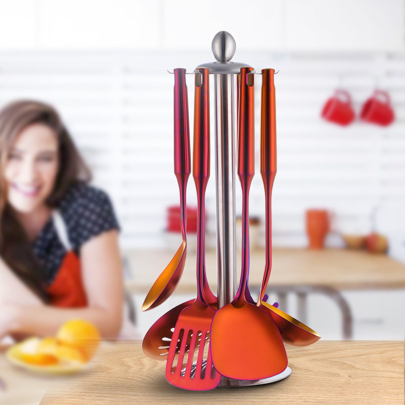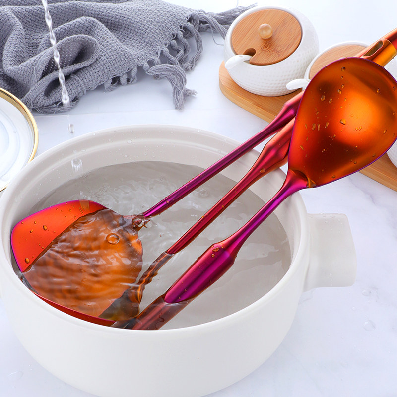 304不锈钢厨具套装创意真空镀钛厨房烹饪工具家用火锅勺炒铲汤勺