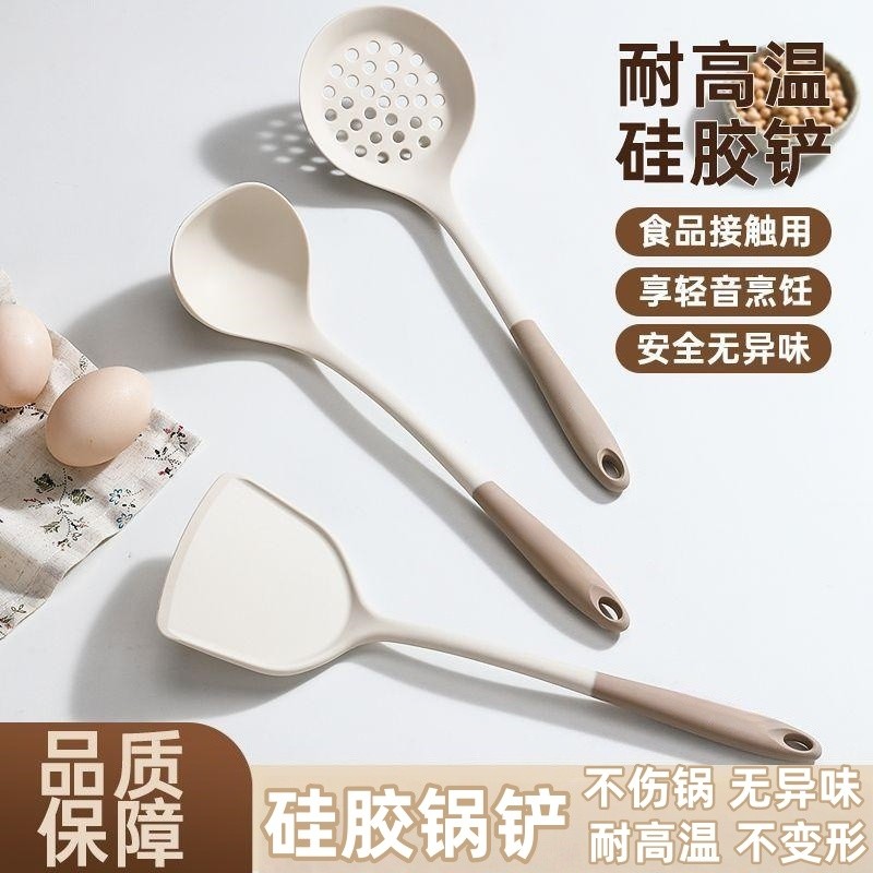 推荐理由:拼色灰白硅胶锅铲家用耐高温不粘锅烹饪工具捞篱锅铲汤勺厨具套装