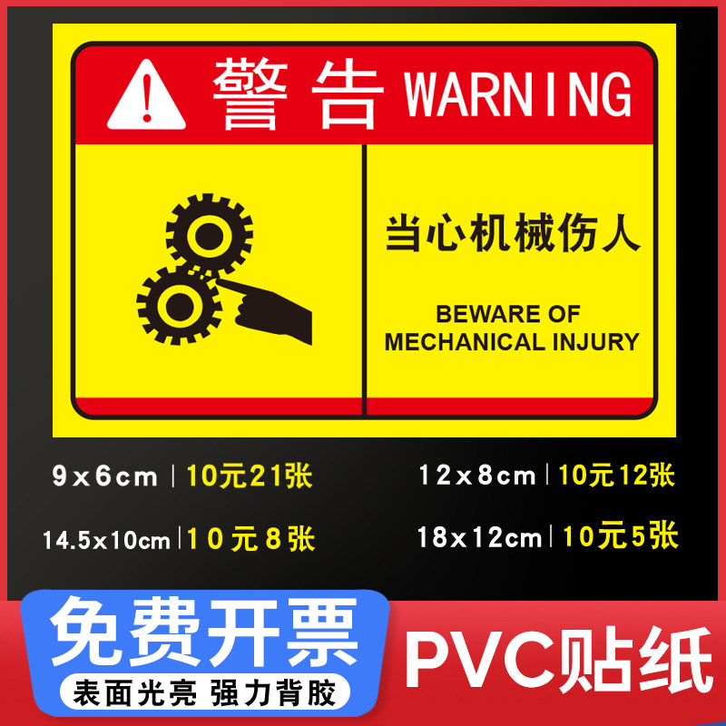 工厂车间机械设备安全标识贴警示警告标识牌当心触电小心有电当心机械伤人注意安全机器运转请勿靠近标牌定制