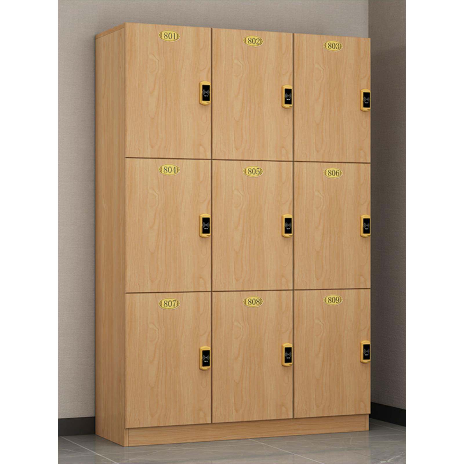 原木色更衣柜员工柜木质理发店存包柜健身房瑜伽储物柜美发店带锁
