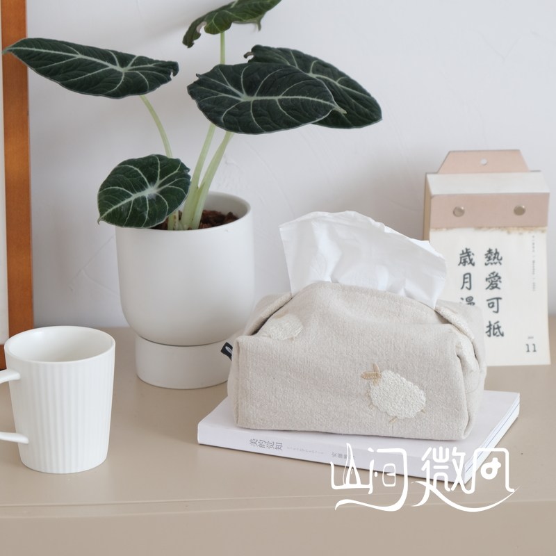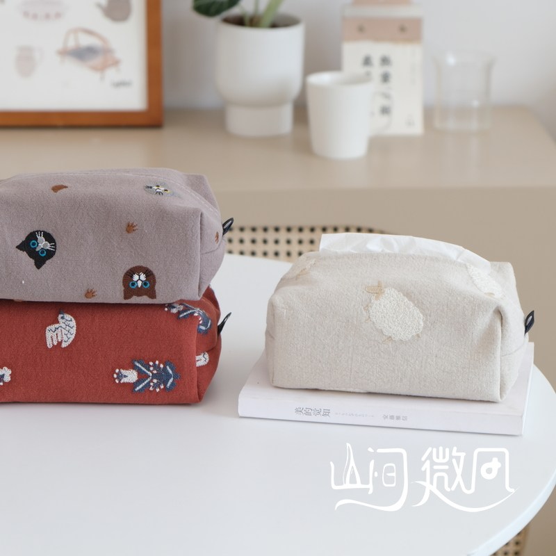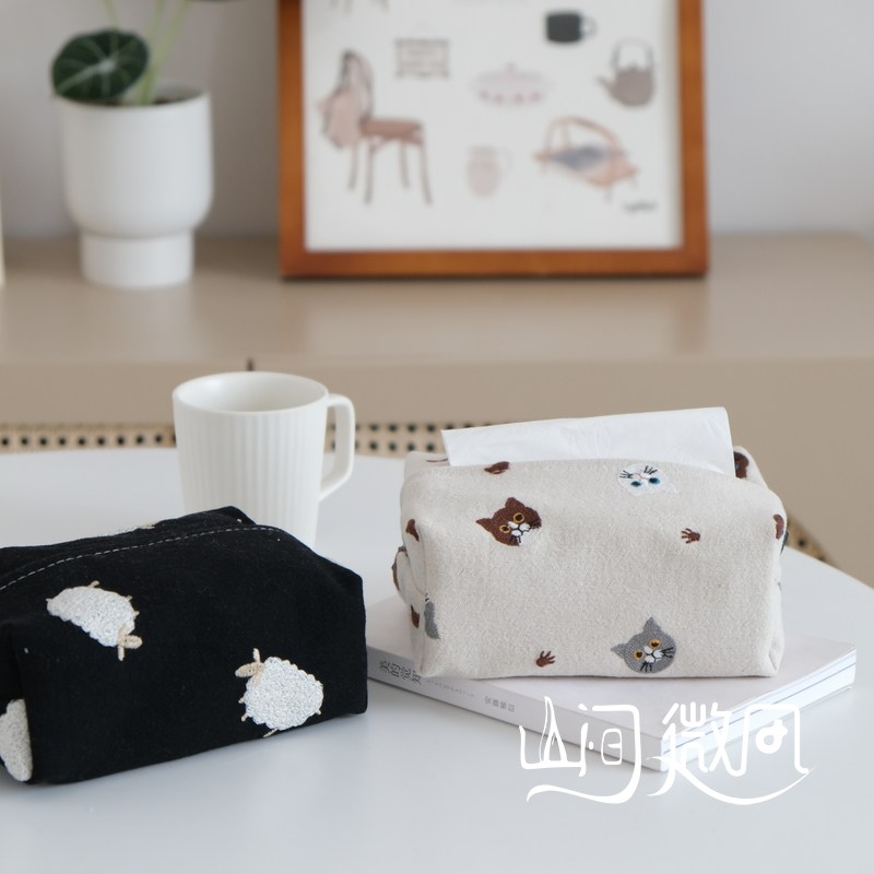 棉麻布艺纸巾盒刺绣北欧日系纸巾套纸巾袋纸抽盒抽纸收纳猫咪小羊