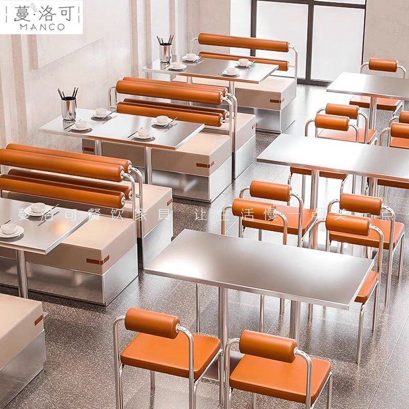 工业风西餐厅休闲区酒吧烧烤火锅店不锈钢卡座沙发餐桌椅组合商用