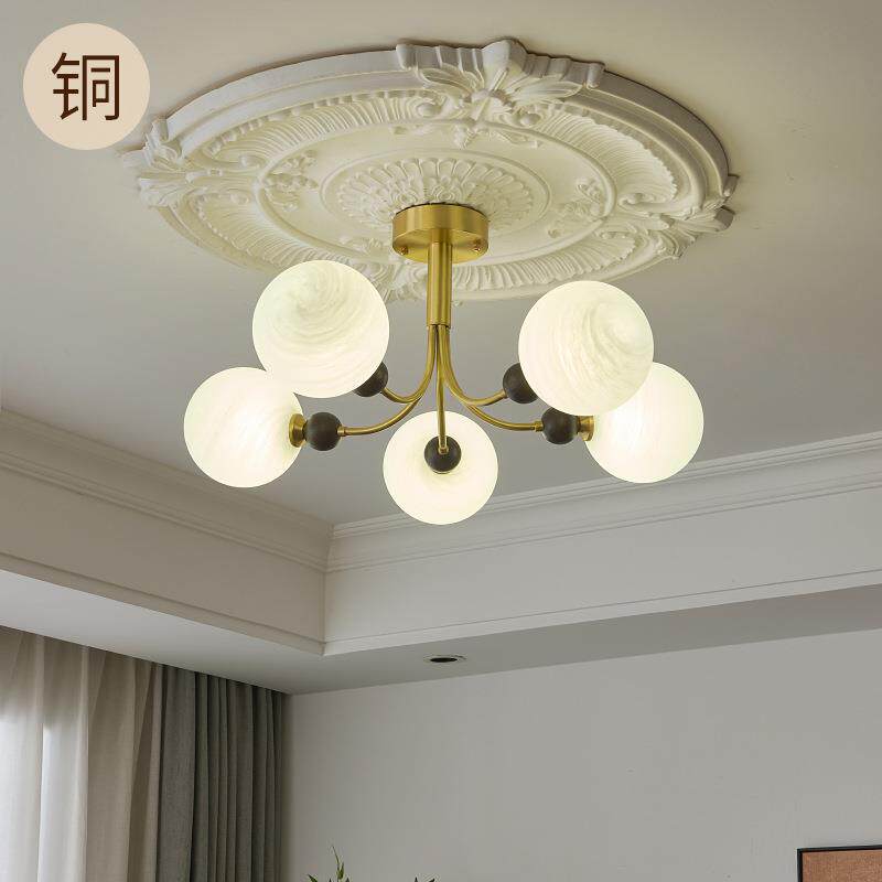 法式中古风全铜云石客厅吊灯北欧创意魔豆卧室灯复古护眼吸顶灯