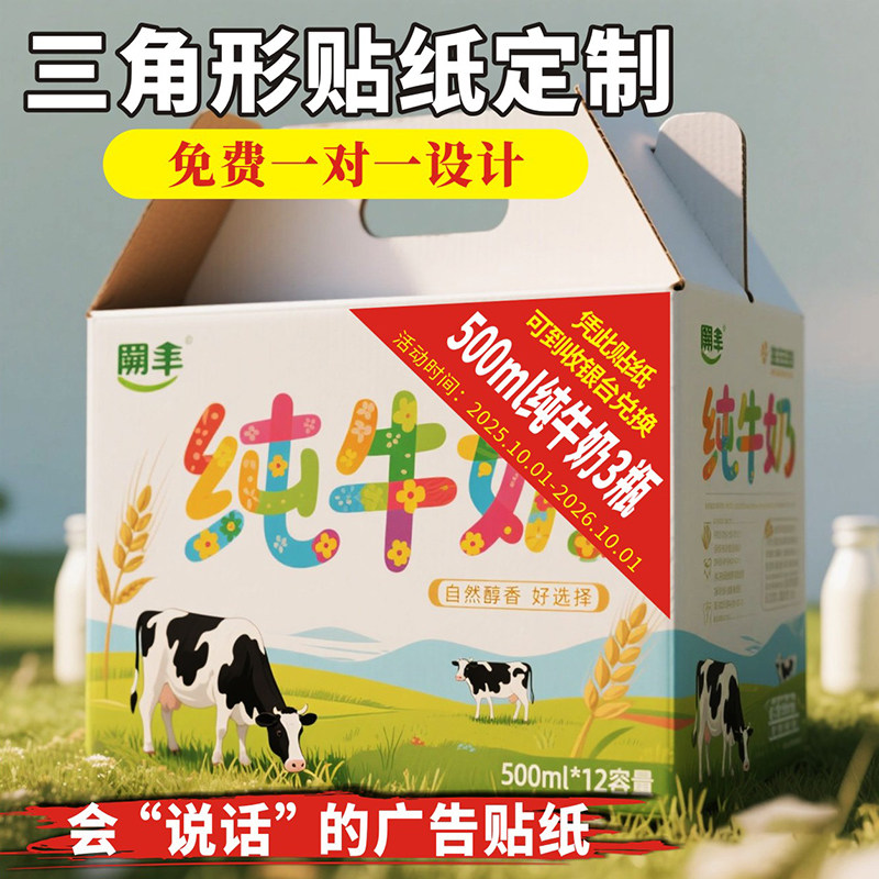 推荐理由:不干胶贴纸定制酒水啤酒牛奶箱子角标三角形标签订做广告自粘印刷