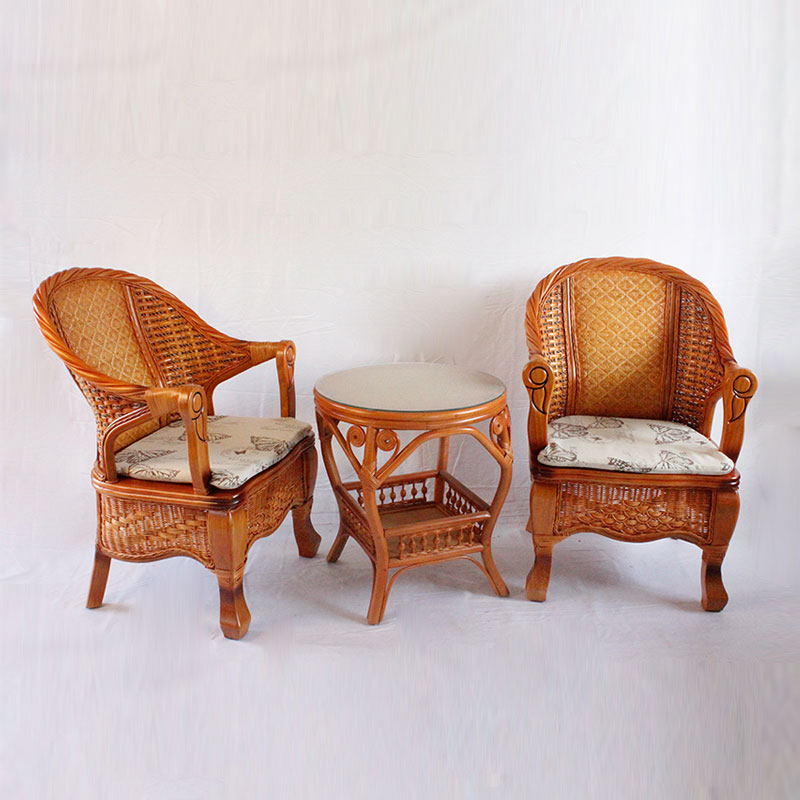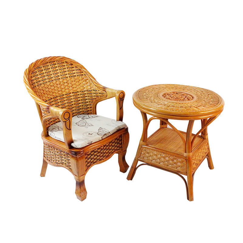 藤编桌椅子茶桌椅套件天然真藤椅实木家用阳台户外休闲靠背扶手椅