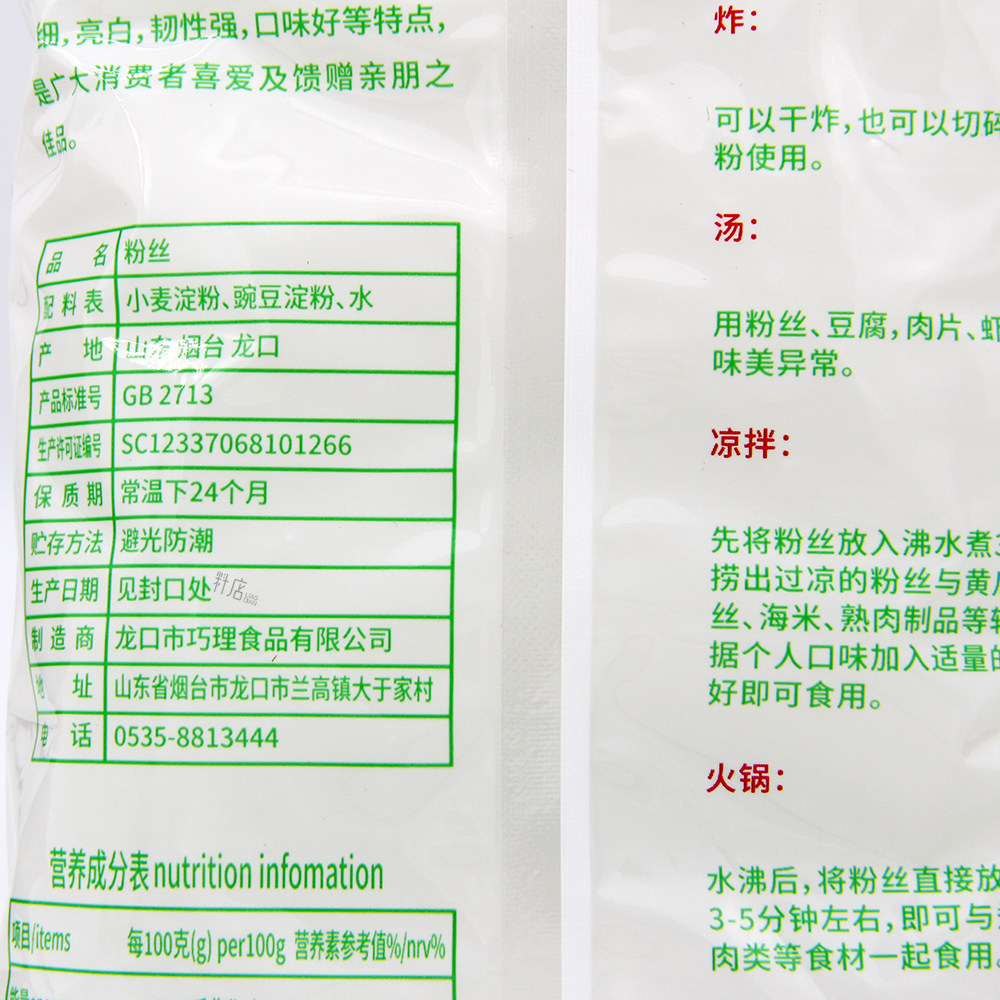 推荐理由:巧理龙口特产粉丝180g/300g麻辣烫速食火锅绿豆粉烤生蚝花甲粉6袋