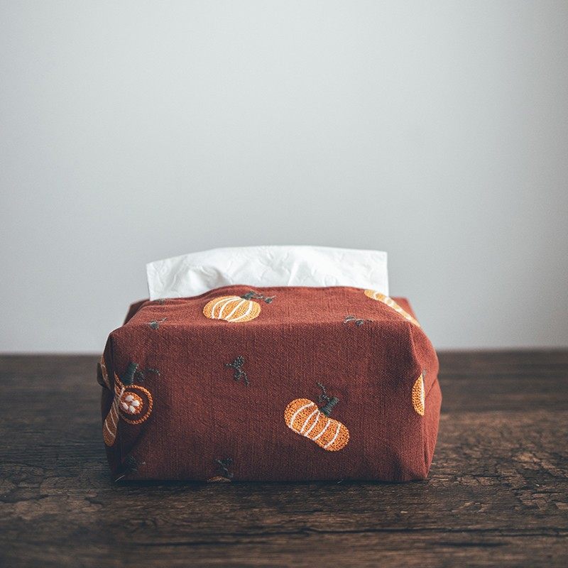 半宅新中式棉麻纸巾套车载客厅乔迁古典南瓜花鸟绣花布艺袋抽纸盒