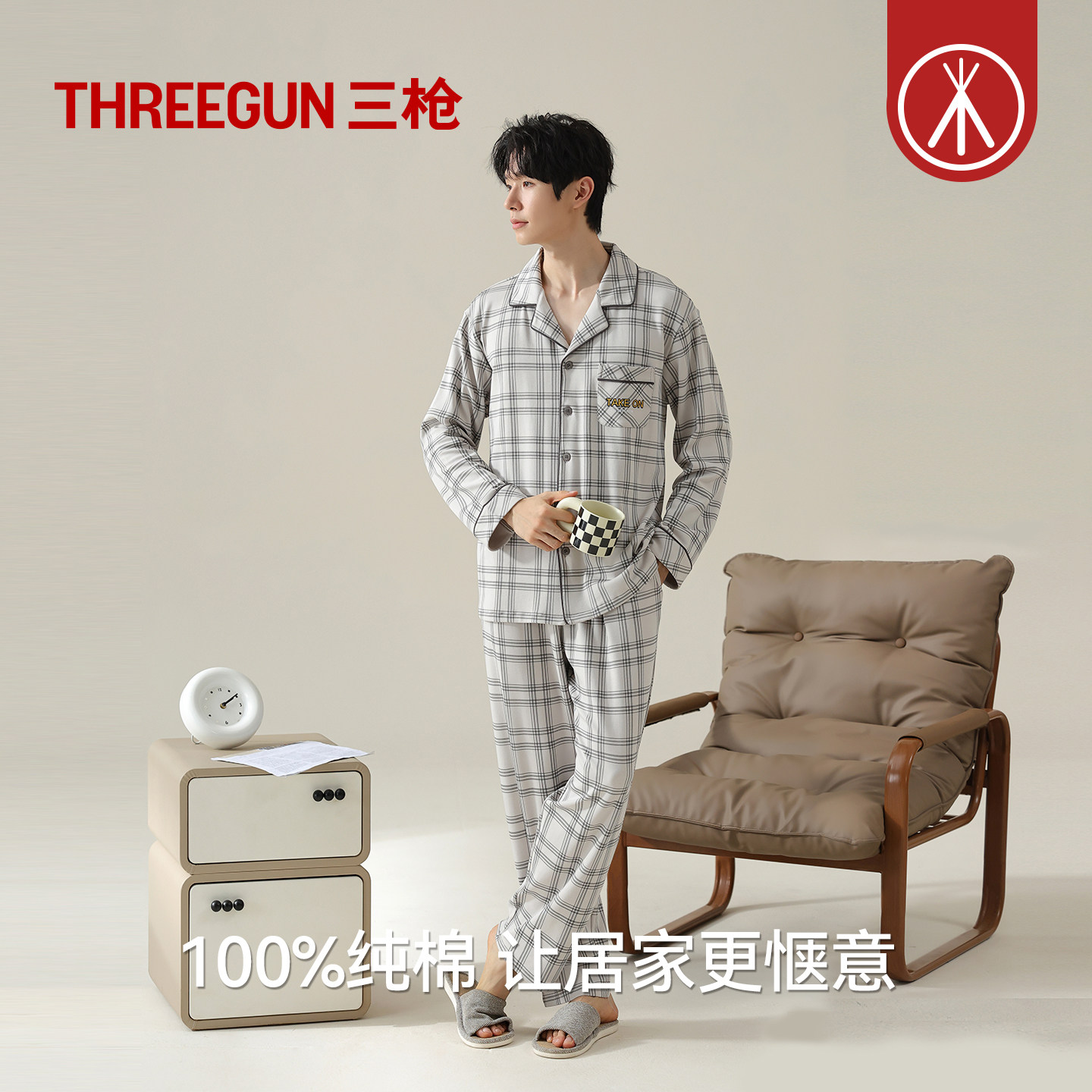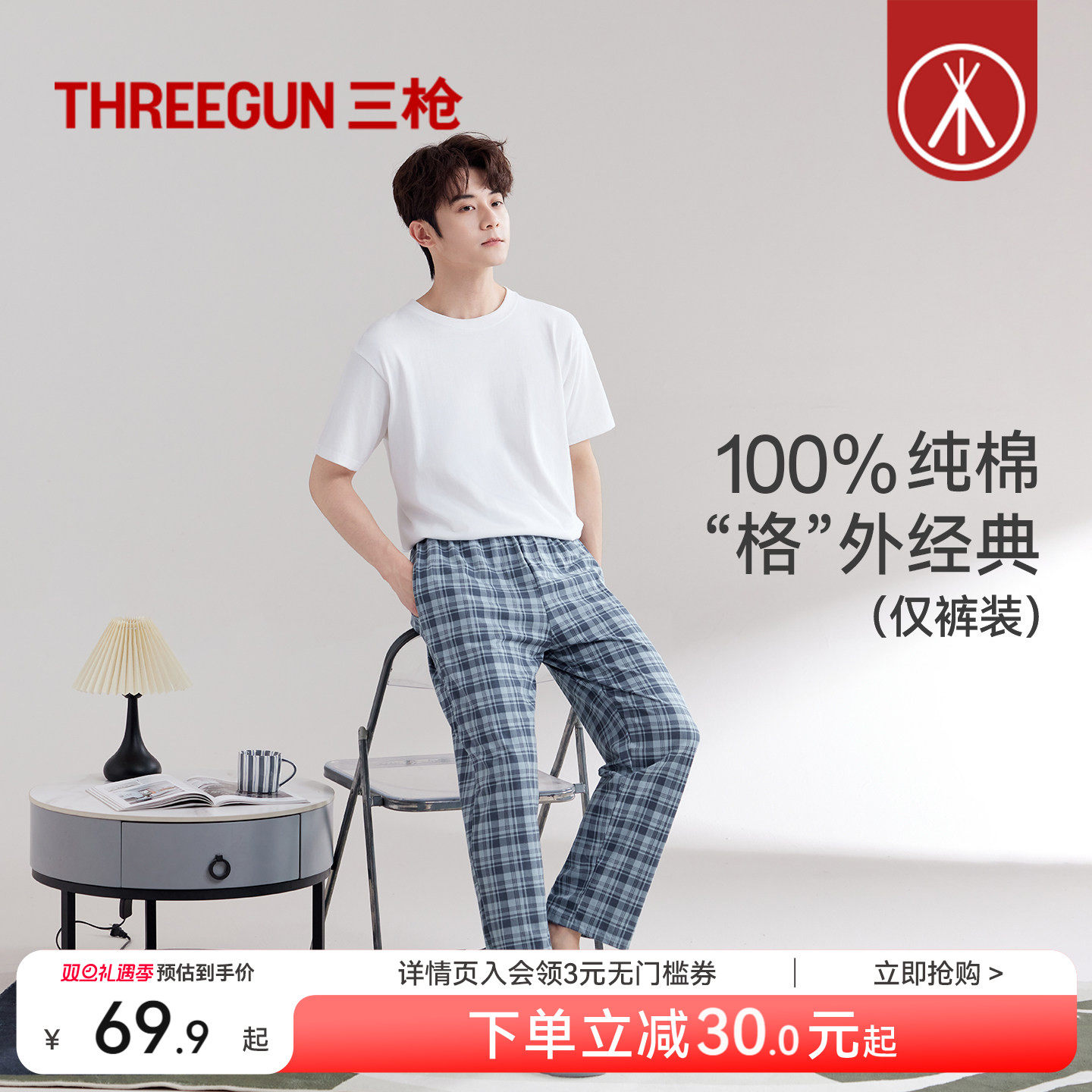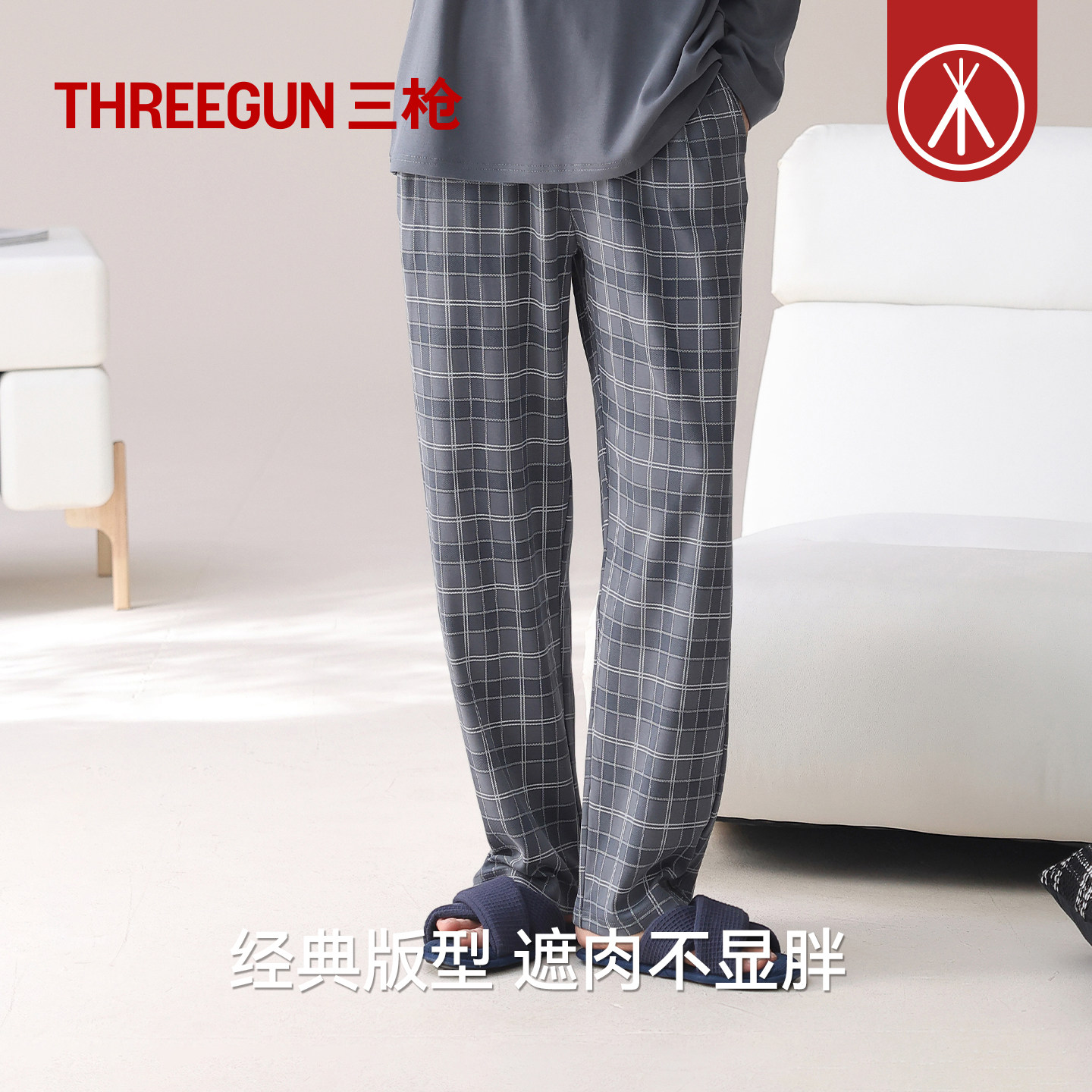 三枪家居服秋季睡裤男纯棉彩格长裤格子时尚亲肤舒适男士家居裤